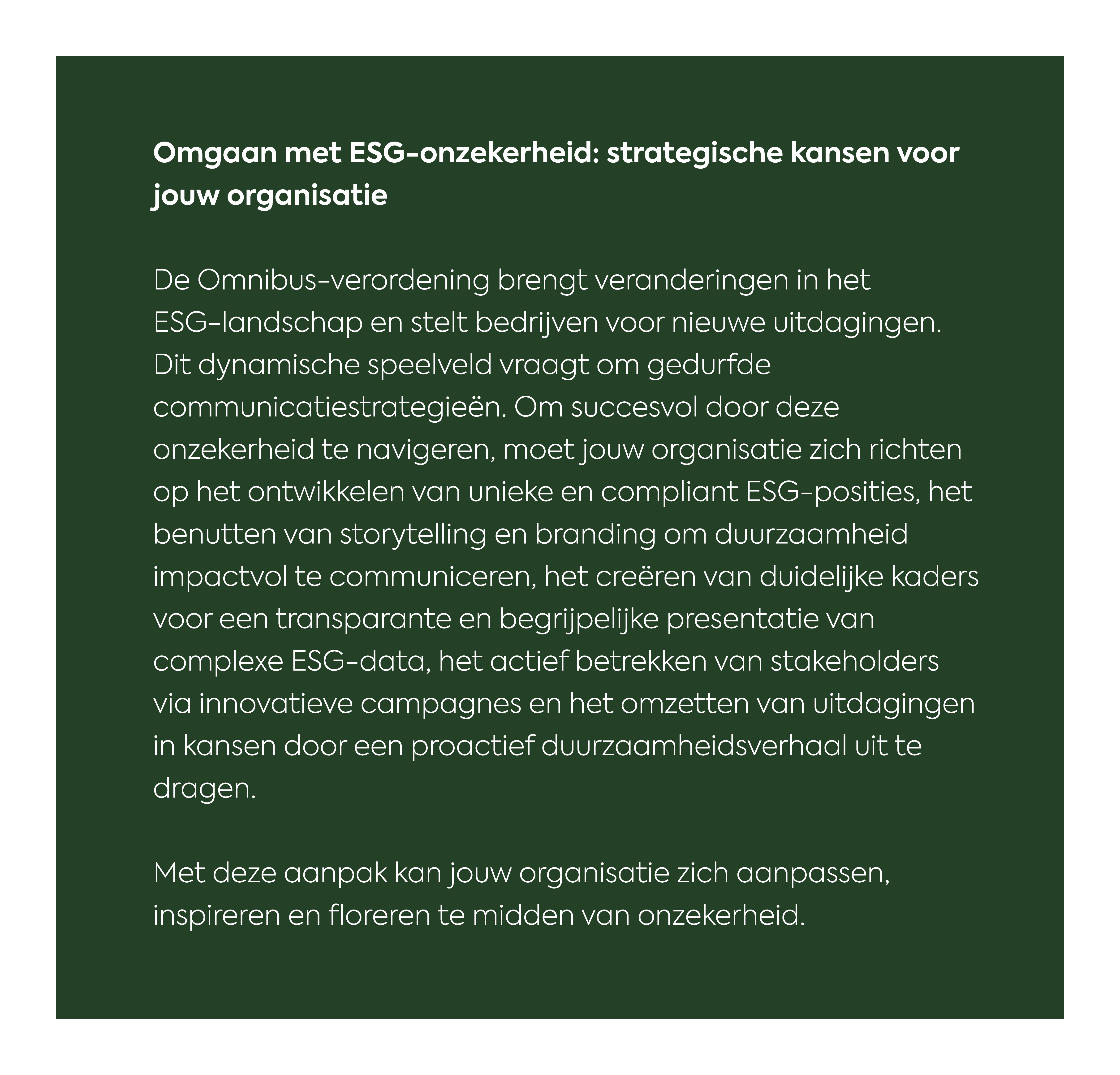 ESG in het licht van Omnibus: een oproep tot proactieve communicatie