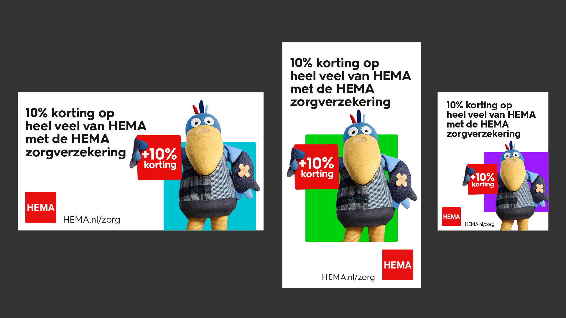 In oktober 2022 is de Geluksvogel-introductiecampagne van HEMA zorgverzekering live gegaan. De nieuwe campagne is primair gericht op het aantrekken van nieuwe klanten, maar ook de huidige klanten mochten niet uit het oog verloren worden. Om potentiële klanten over de streep te trekken biedt HEMA klanten met een HEMA zorgverzekering 10% extra korting op bijna het gehele HEMA-assortiment. Zowel in de winkels als op hema.nl. Een benefit waarmee HEMA een unieke positie inneemt tussen de veelal op polis- en/of prijsvoorwaarden gerichte campagnes binnen de branche.