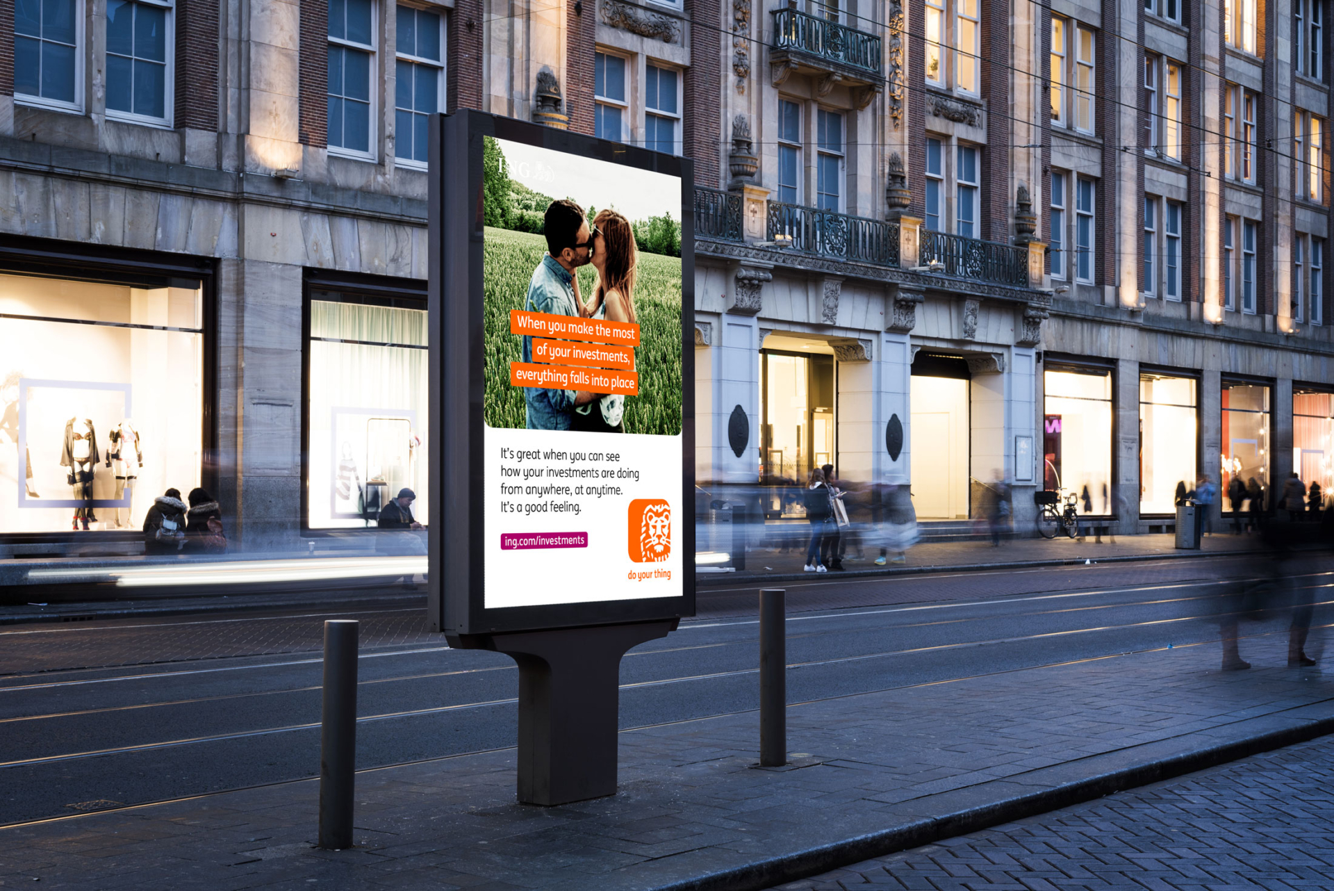 In 2020 introduceerde ING hun nieuwe strategische positionering met de pay-off ‘do your thing’. De bank neemt hiermee afstand van het stereotype beeld van een ouderwetse bank. De wereld van mensen draait namelijk niet alleen om financiën. Het gaat om kansen, mogelijkheden en de vrijheid om je eigen leven vorm en inhoud te geven. ING helpt je daarbij om het beste uit jezelf te halen.