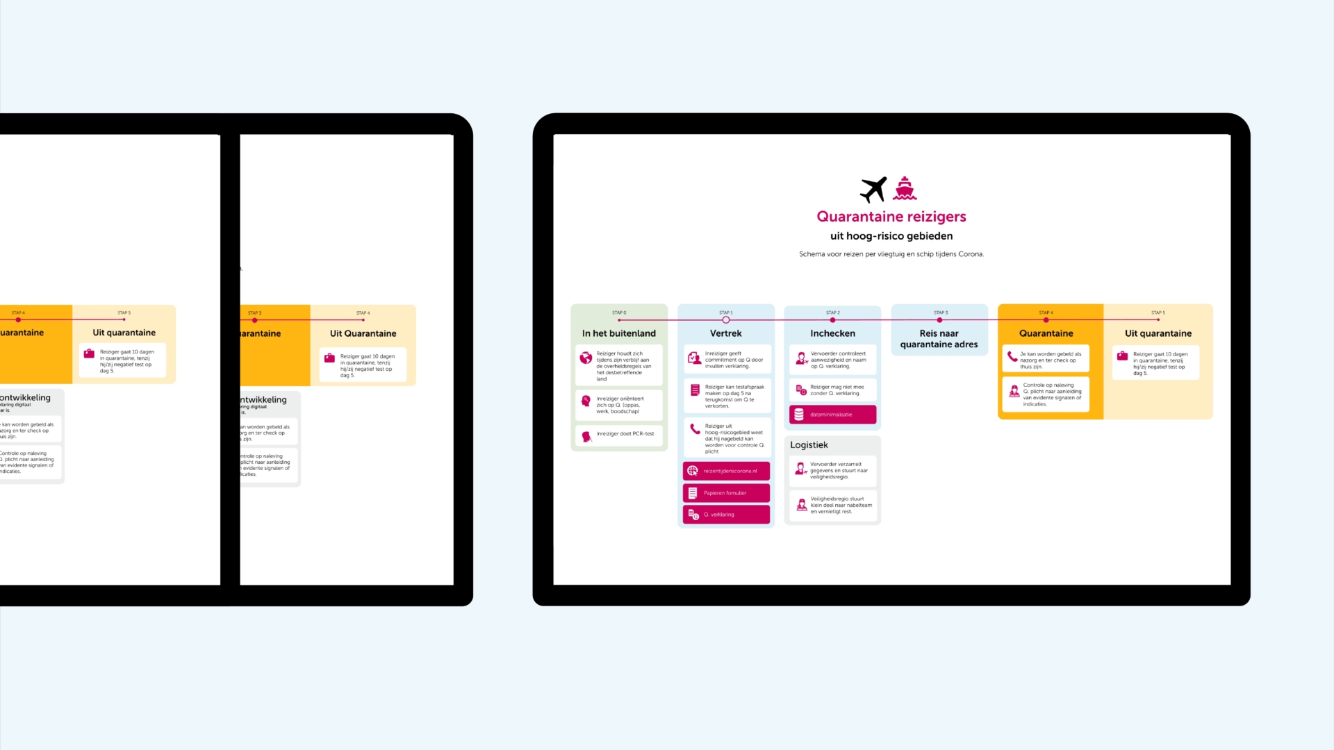 Het Ministerie van Volksgezondheid, Welzijn en Sport vroeg om een partij die een designproces kon leiden binnen een complexe en politieke organisatie en samenwerking. TD werd gevraagd dit proces te coördineren met alle partners: VWS, Justitie, de veiligheidsregio’s, de grote vervoerders en de gemeentes. Zowel het proces als de middelen voor het controleren van de quarantaineverklaring moesten ontworpen worden, evenals de handhaving ervan.