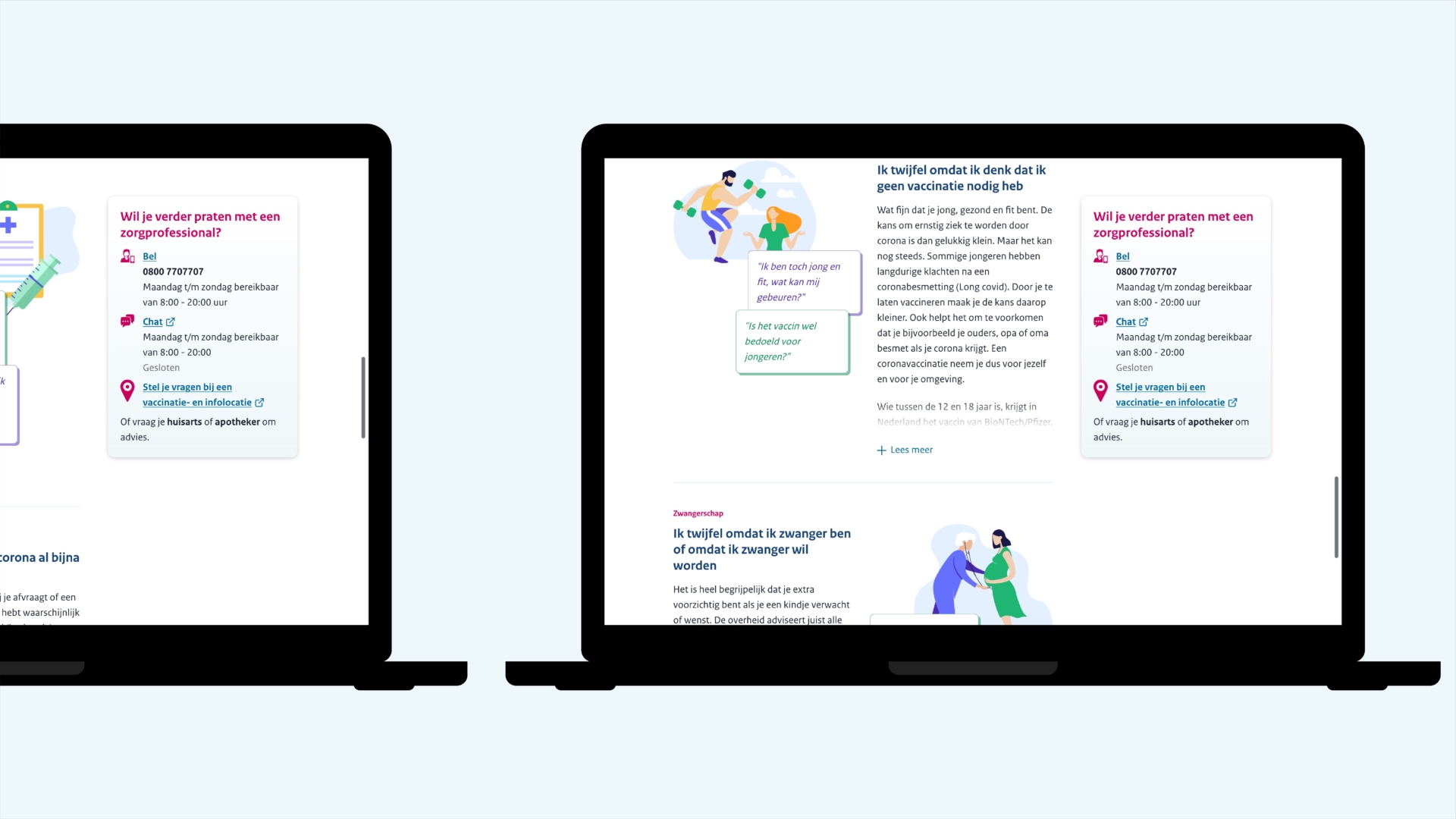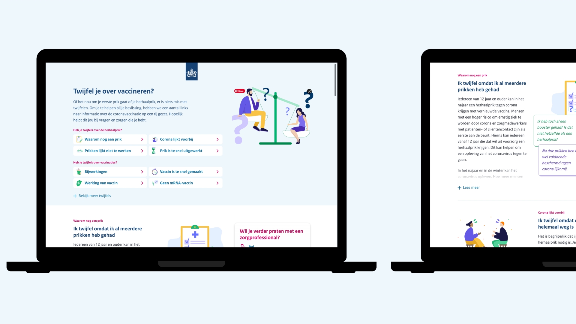 In het vervolg zijn zo meerdere designopgaven aangepakt, zoals het bereiken van groeperingen die niet werden bereikt op basis van data-research. Ook werd na een singleminded geloof in vaccinatie de communicatie en dienstverlening meer opengesteld voor mensen die aan vaccinatie twijfelen, via overvaccineren.nl.